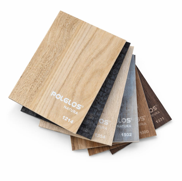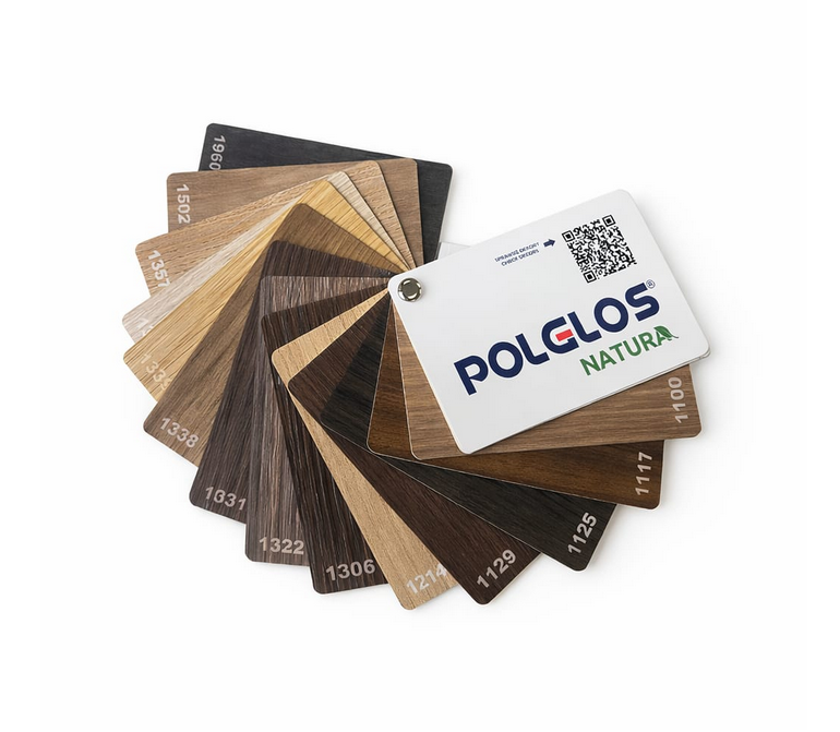 Duży wzornik Polglos Natura – wzornik drewnopodobnych płyt meblowych Polglos Natura zawiera 15 dekorów w formie dużych laminatów